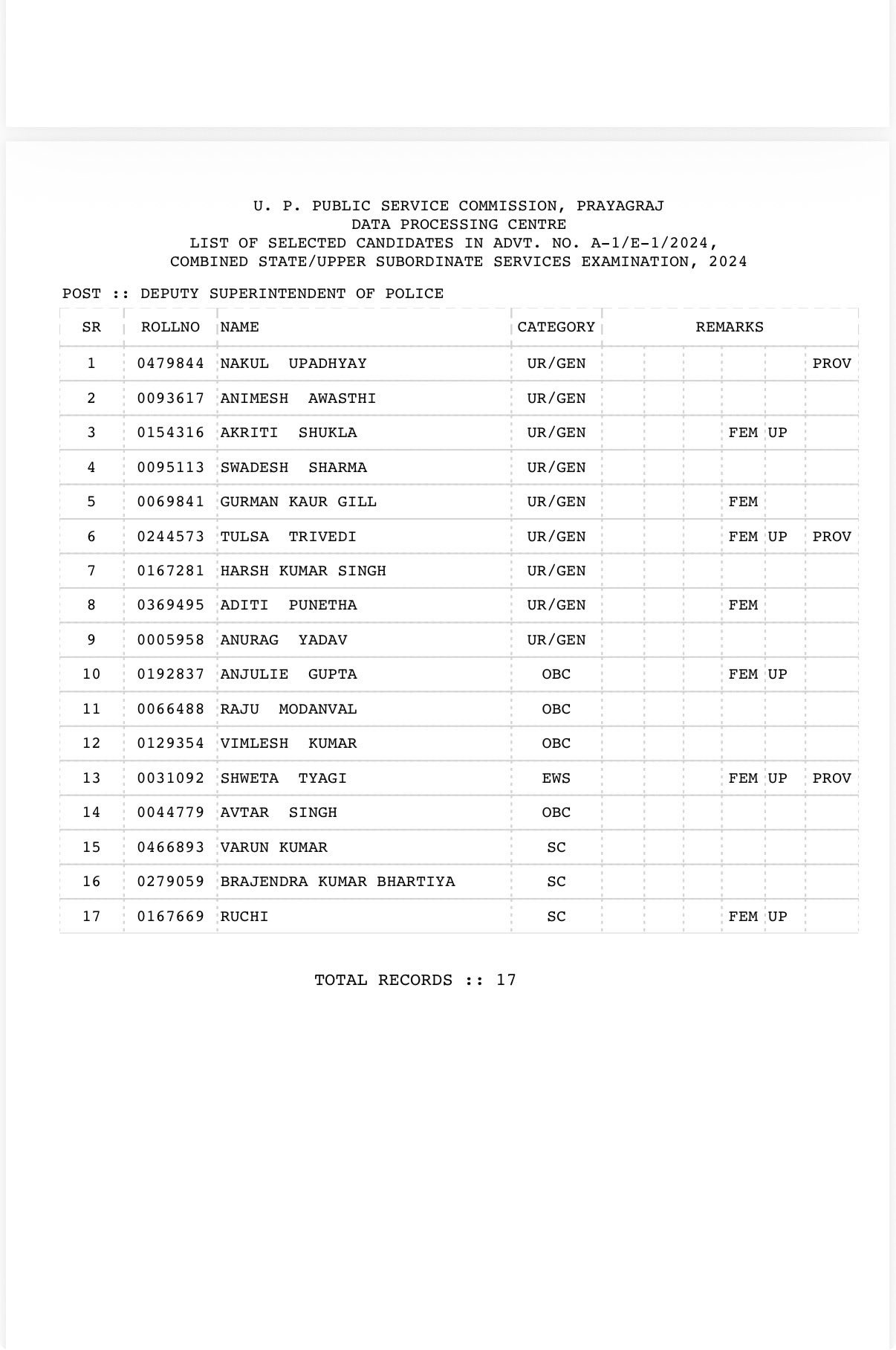 इन उम्मीदवारों का चयन प्रमुख प्रशासनिक पदों जैसे डिप्टी कलेक्टर के लिए हुआ है।