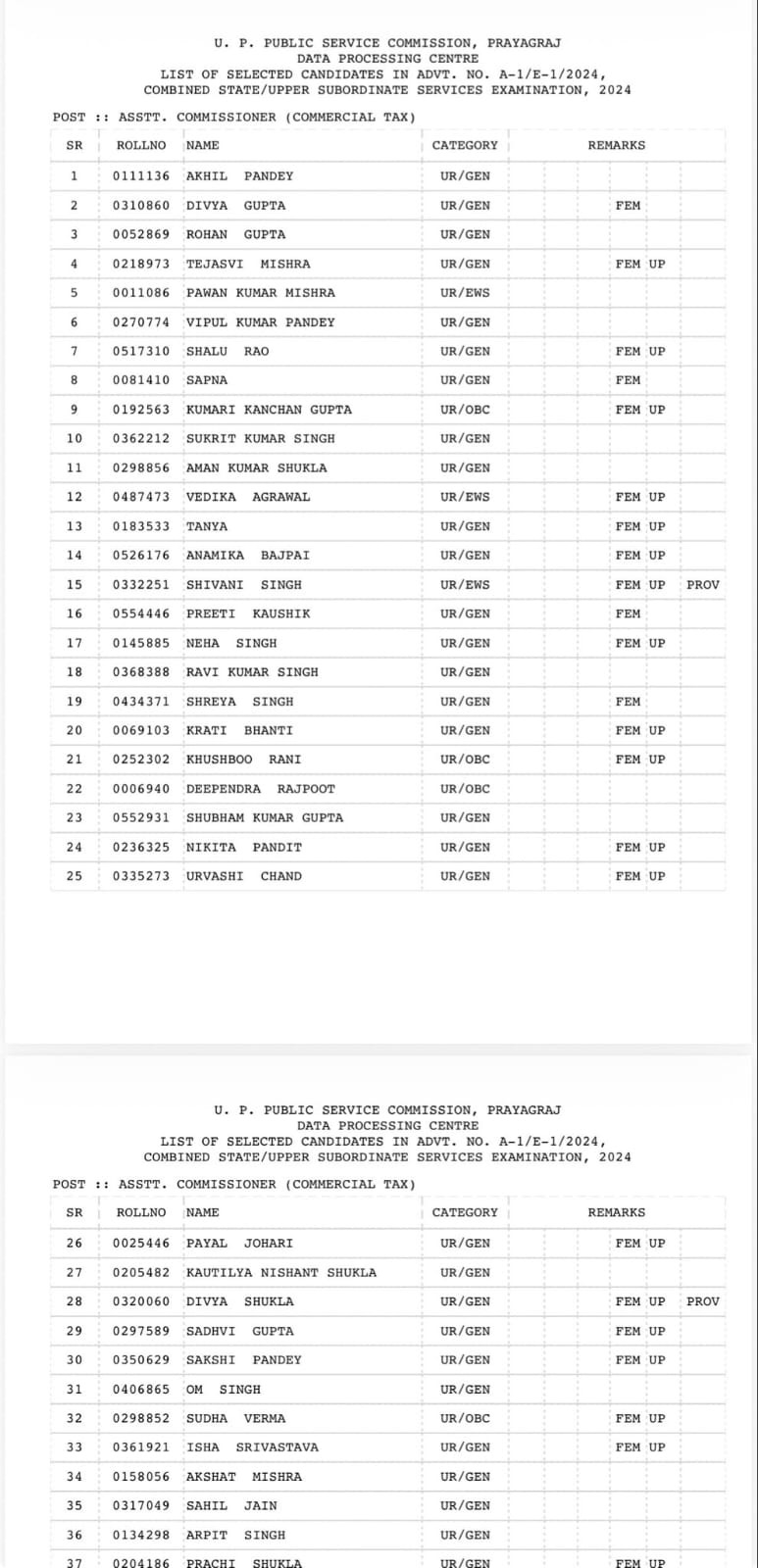 PCS 2024 परीक्षा में इस बार टॉप 3 उम्मीदवार इस प्रकार रहे: